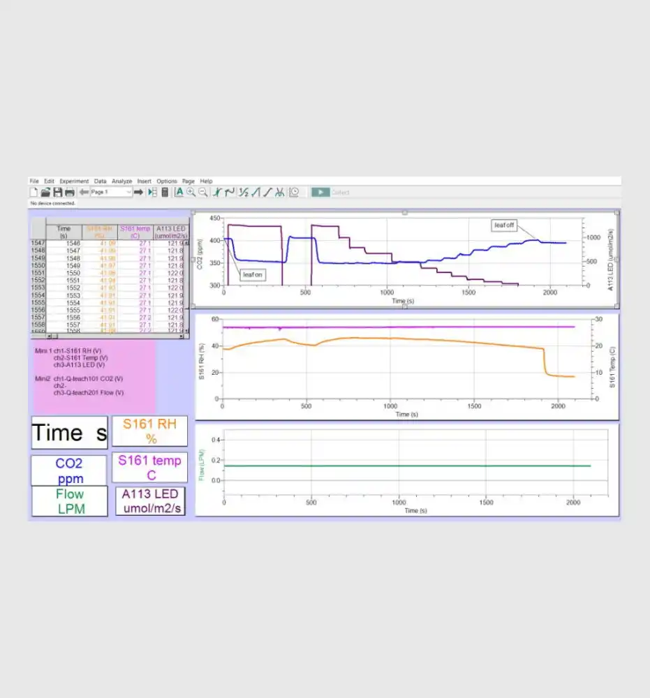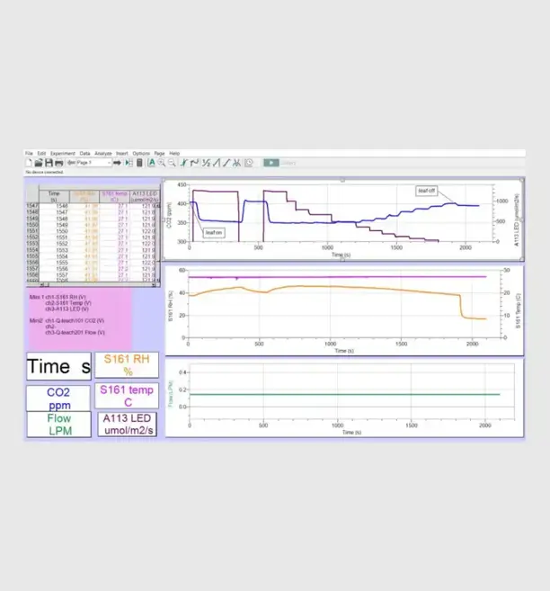 Q-teach 植物二氧化碳分析系统主要用于叶片的光合作用、呼吸作用和蒸腾作用的原理教学实验。该系统包括实验所需的部件。实验人员可以使用 Q-teach 植物二氧化碳分析系统比较不同植物种类在不同环境生长条件下的光合作用速率。可以研究 C3 和 C4 植物在不同光照条件和不同二氧化碳浓度下的差异。软件允许在一系列二氧化碳浓度或光照强度范围内计算二氧化碳同化速率。此外,软件还允许绘制光合作用的二氧化碳响应曲线和/或光响应曲线。通过这些曲线,实验人员可以推导出一些生理学上重要的参数,例如:羧化效率、二氧化碳和光补偿点、二氧化碳和光饱和点、无光条件下的叶片呼吸速率,以及在有光情况下零二氧化碳水平下的光呼吸速率。通过蒸腾速率与光合作用速率的比率,实验人员可以计算植物的水分利用效率(WUE)。