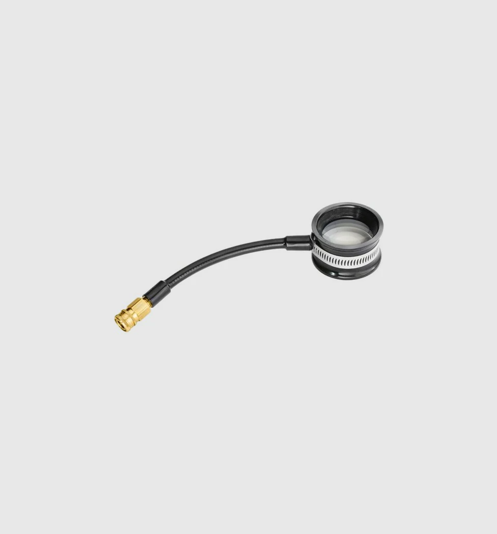 曲臂目镜直接安装在仪器面板上,曲臂长度是 15 厘米,可将其固定在聚焦处,从而实现免提操作。然后可以快速旋转目镜以更换样品室中的样品。不使用时,目镜可以弯曲存放,或者通过仪器面板上的快速连接器轻松拆卸。3.5 倍(3X)的镜片直径为 5.7 厘米。