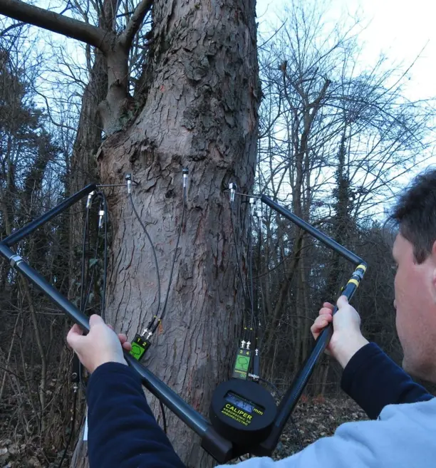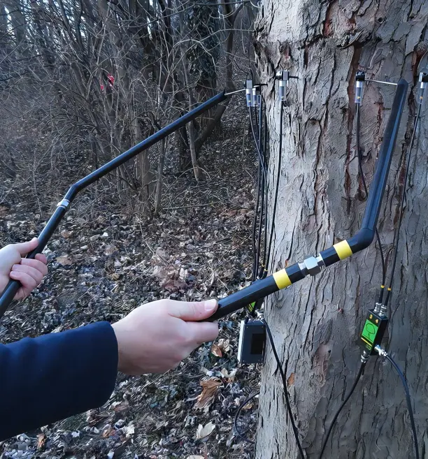 FAKOPP 数显式树木测径仪是一款专为林木检测与建模设计的高效、精准测量工具。它集成了蓝牙无线传输技术与数字显示功能,能够快速、准确地测量树干或不规则枝干断面间的直径或距离,并将数据实时传输至配套的树木检测分析软件可显著加快传感器位置的注册过程,特别适用于 ArborSonic 3D 和 ArborElectro 等树木检测系统传感器的现场布设。
