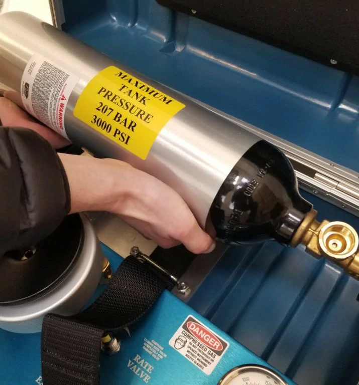 用于 Model 615、Model 615D 和 Model 1515D 便携式植物水势压力室的备用气瓶。该气瓶是一个 20 立方英尺容积的铝制瓶,最大压力为 207 Bar/3000 PSI。