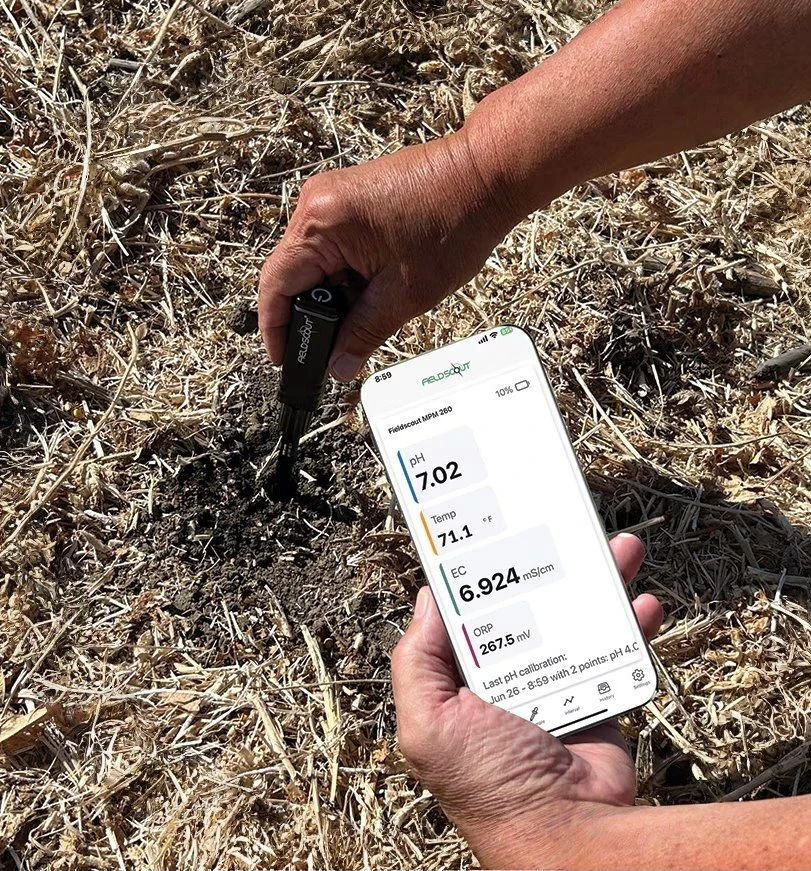 FieldScout 无线蓝牙 pH/EC/ORP 测量仪是科学家、园艺师和农业专家的理想选择。设备支持实时数据同步、超限警报及地理标记存储,探头提供钝头和尖头两种选项,内置无线充电电池,配套 FieldScout App 实现多点校准与数据管理,随附校准套件及充电座。让用户无论是在实验室、温室还是田间地头,都能获得可靠、精准的实时数据,助力科研探索和精准农业管理。