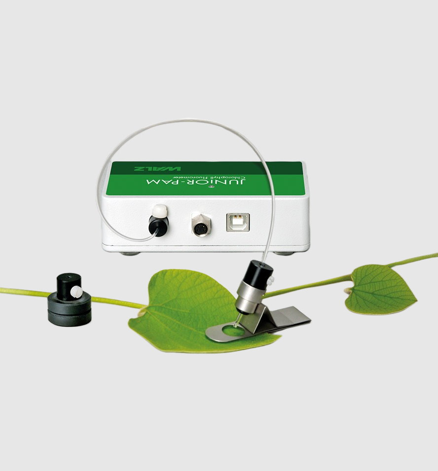 JUNIOR-PAM 植物叶绿素荧光仪是一款采用高度集成化设计的分析仪器,具备对光合系统 II 进行全功能饱和脉冲分析的能力。所有核心光学与电子单元均集成于一个结构紧凑的机身之中。荧光检测系统通过一根长达 50 厘米的高效光纤与样品实现连接。