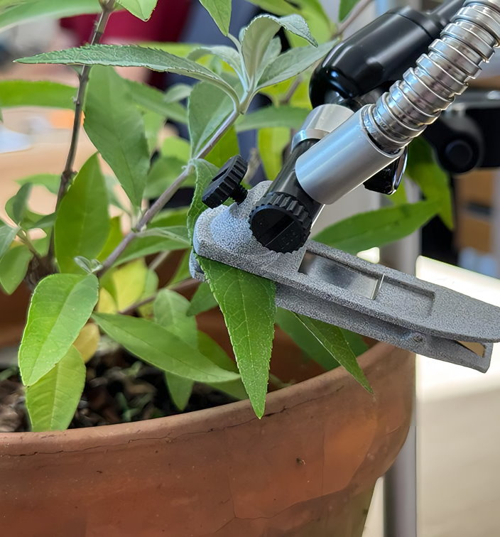 光量子/温度叶夹 | 余弦校正光量子传感器量程 0~20000 μmol/m2/s 叶片温度热电偶量程-10~90℃ 远程触发按钮与三脚架接口 |