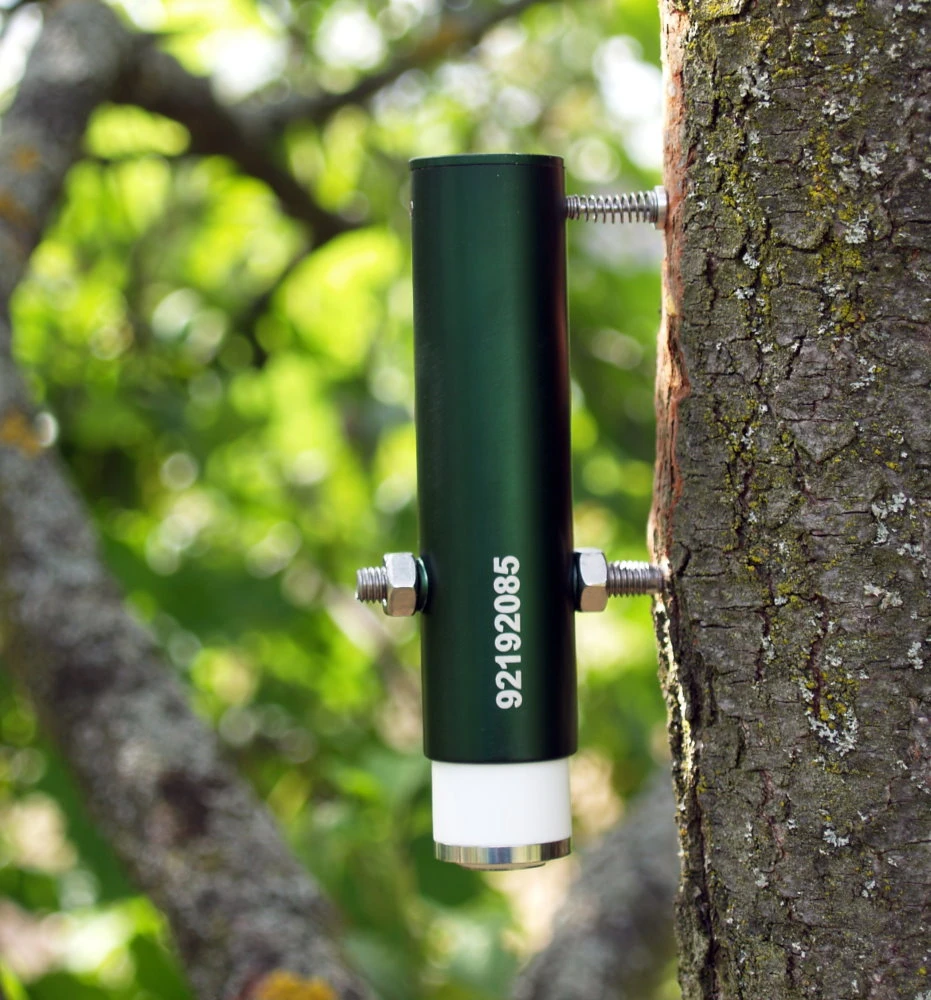 D1 树干直径变化记录仪是一款基于电位计的点式树干生长监测设备。能够以用户定义的间隔精确自动测量树干直径变化(小于 1 µm)。此外,由于机身底部装有热电偶,还能够监测空气温度。其坚固的结构和高容量锂电池确保其能够承受各种极端条件。